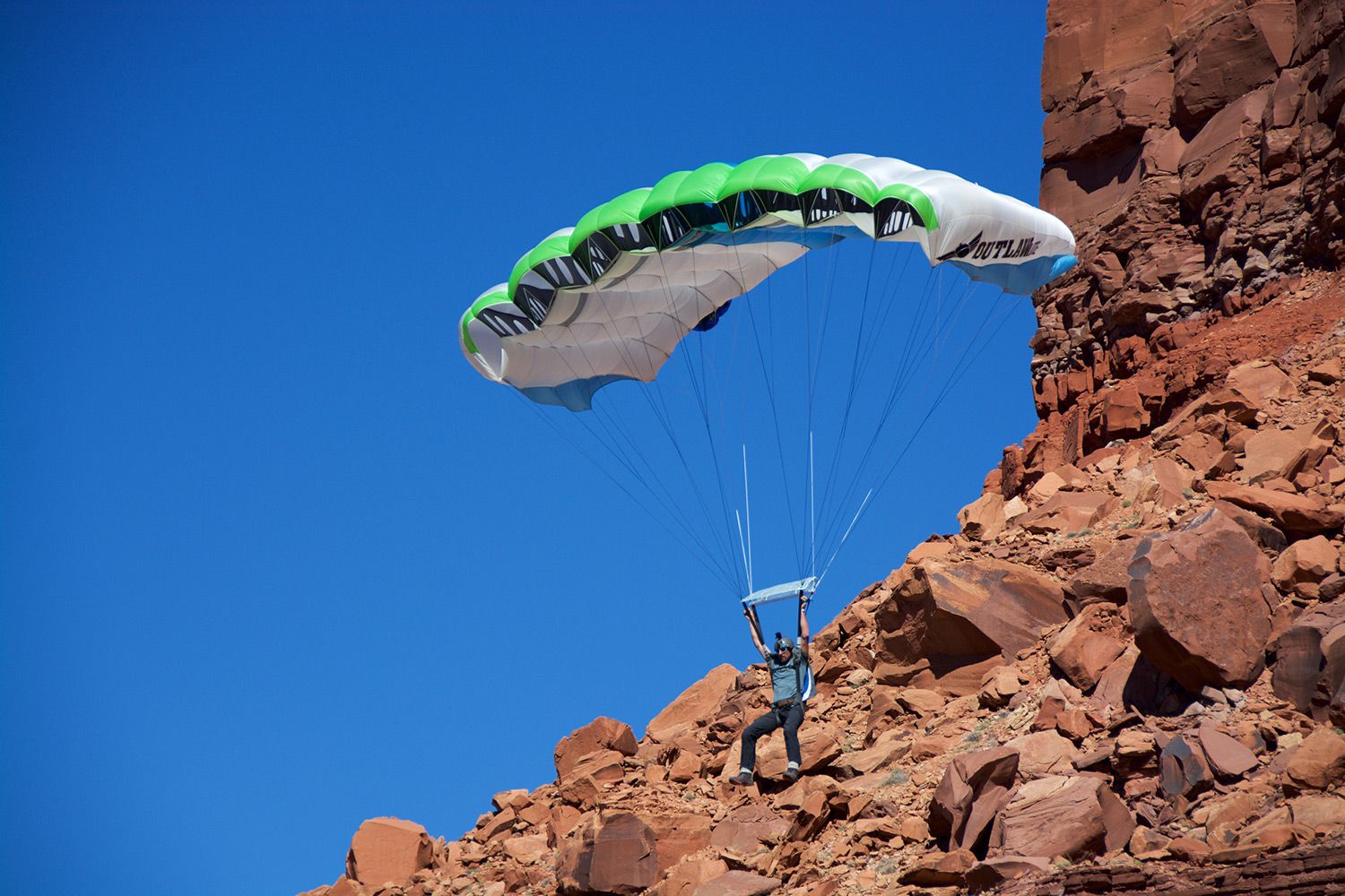 Our sister company, Ozone Gliders Ltd., now has over fifteen years of R&D in ultralight ram-air canopies. It is well-documented that lower sail inertia, thanks to lower weight, means improved handling characteristics and better behavior in flight-testing. Although BASE canopies are much lower performance and much more stable than paragliders, there are similarities. A lighter weight parachute has more agile handling, in addition to better opening characteristics, all other factors being equal.
