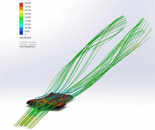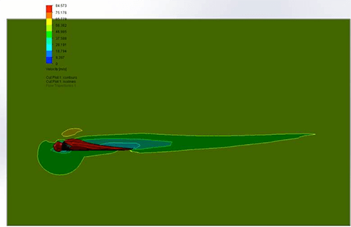 Figure 4. Velocity Cross section of a Squirrel Prototype (AoA not illustrated). The Center of Pressure is behind the pilot’s head.