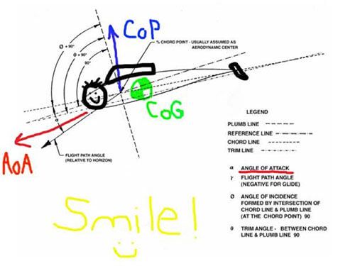 One is Scotty Bob, and as he zooms past you see that his arms are level with his shoulders and the angle of his efficient-looking position is sort of pointed “low”. He zooms past at 140mph on the radar gun. Scotty is flying well above MID speed – he has massive amounts of available lift to flare or maneuver.