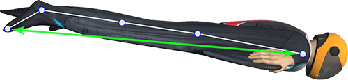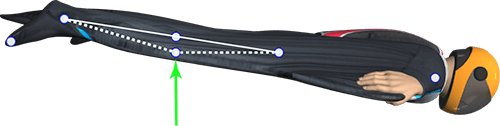 If you were to picture yourself lying face down on the sidewalk, the max-performance configuration would mean that only your face and your tip-toes would be touching the ground, with your wingtips just barely off the ground. Your body would be forming a gently de-arched position from head to toe. It’s that simple. This smooth de-arched position encourages laminar airflow over the top surface of your wingsuit from head to toe, and a smooth bottom surface to deflect air in the most laminar fashion possible. Please note that saying we are creating an “airfoil” with our body would be inaccurate, and would deeply upset an aerodynamicist (the only airfoil present is built into your arm wing).