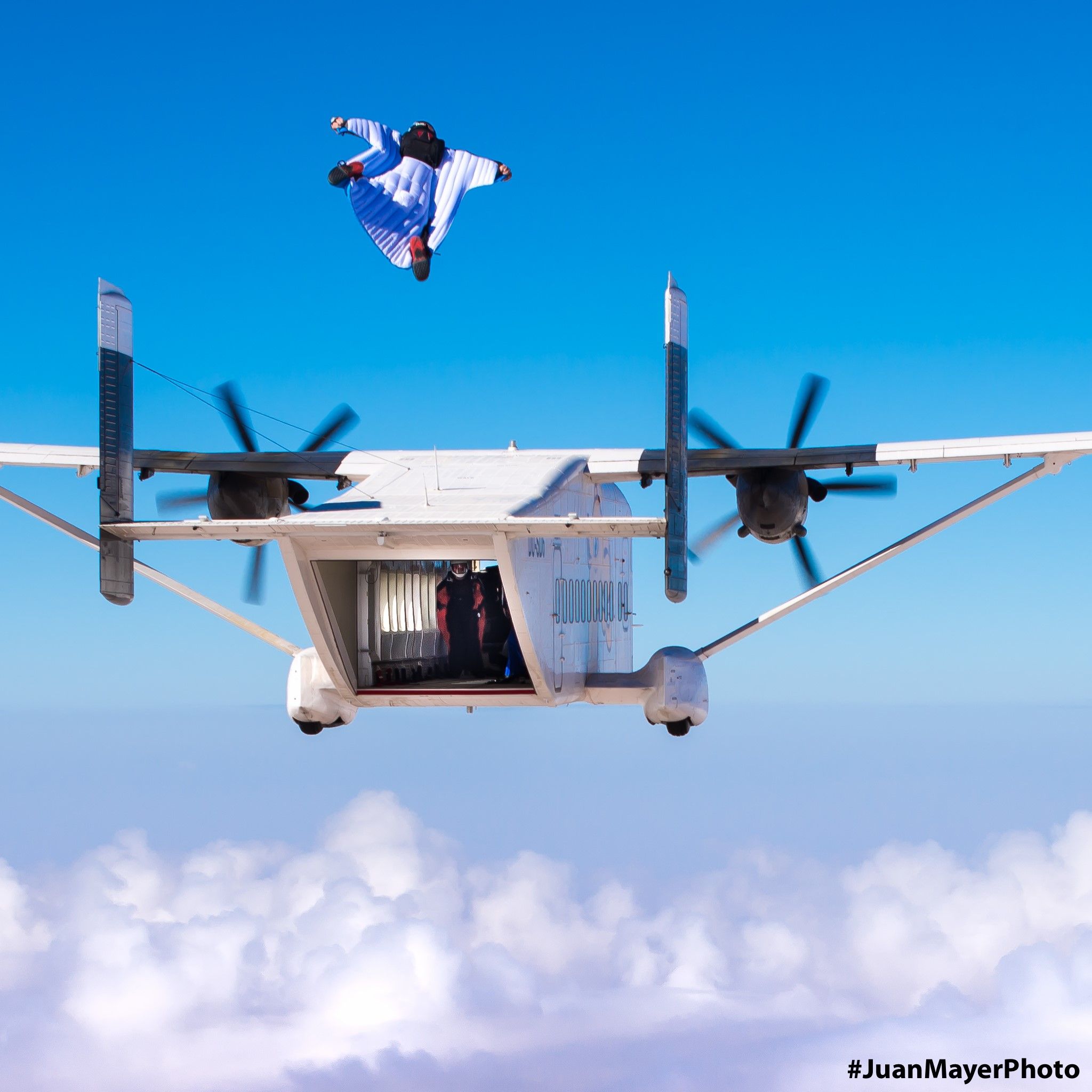 Wingsuit exits are firstly about the tail of the aircraft. Stability, navigation, and a successful approach to the group are the subsequent priorities. Before exiting, you should be thinking about (in order) the tail, your stability relative to the group, and finally your own personal stability. Please note that your personal stability is third priority here - it’s more important to not cause a plane crash or a mid-air collision than it is to have a comfortable and stable exit.